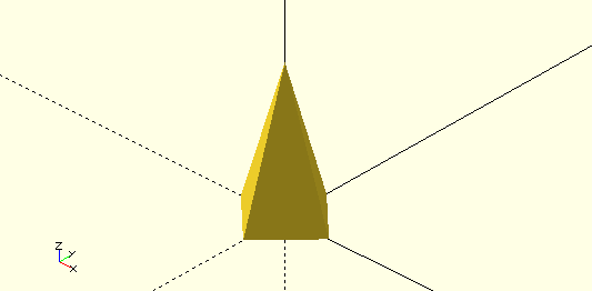 cylinder(h=15,r=5,r2=0,$fn=4);